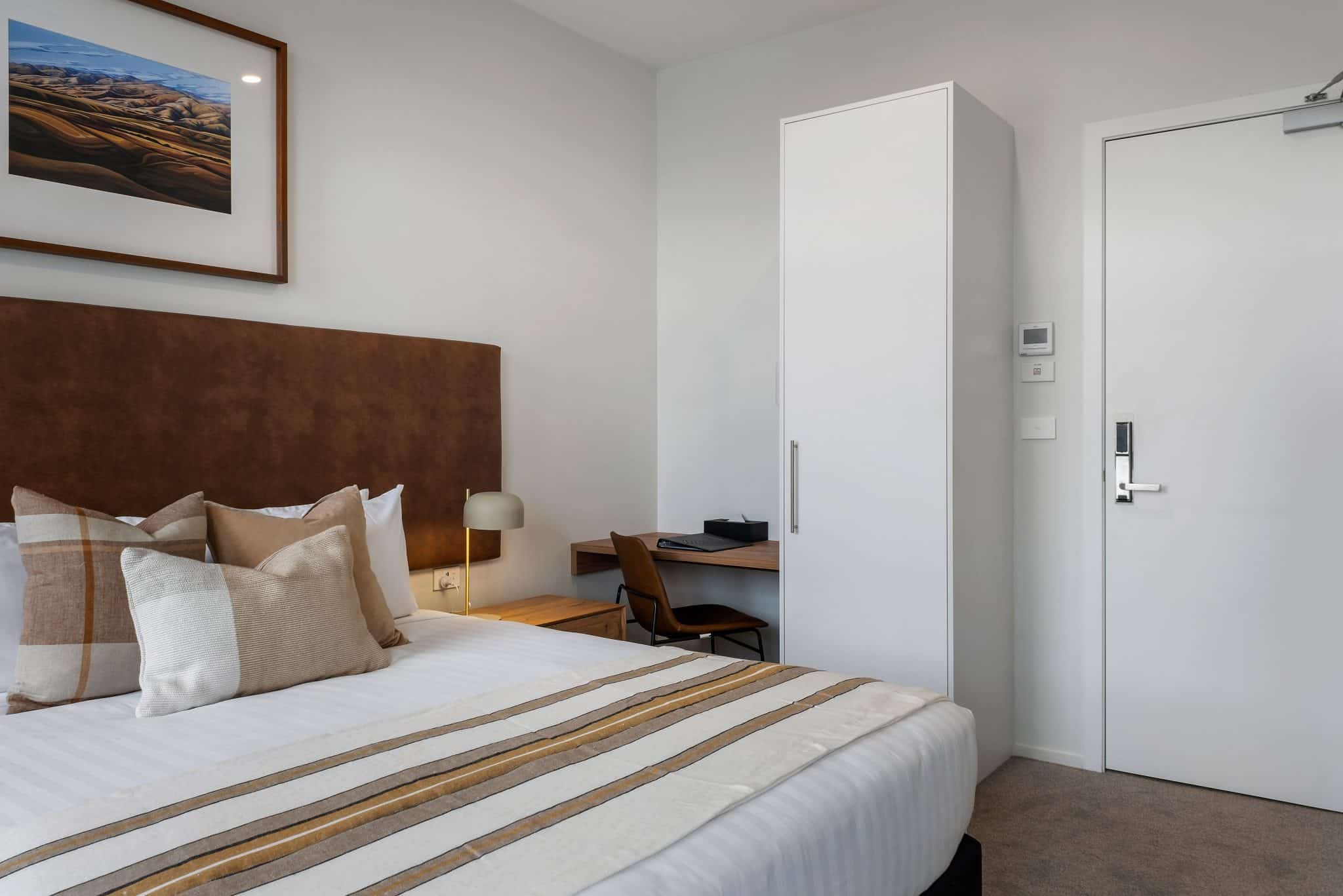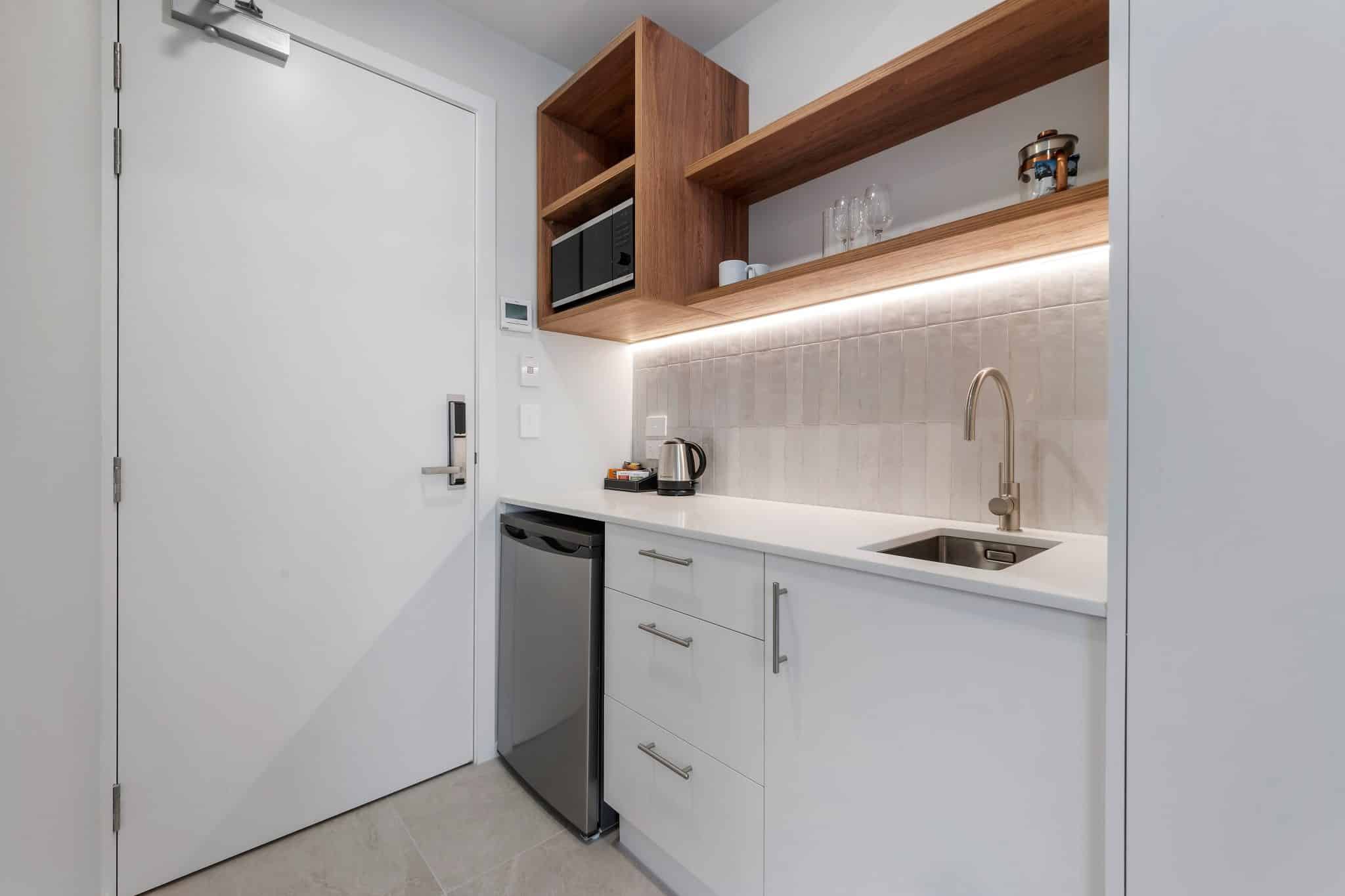 Enjoy a dedicated study nook, a flat-screen Smart TV, and a well-equipped kitchenette with a full-size fridge for light self-catering. Select studios also include a private balcony, perfect for enjoying morning sun or evening air.